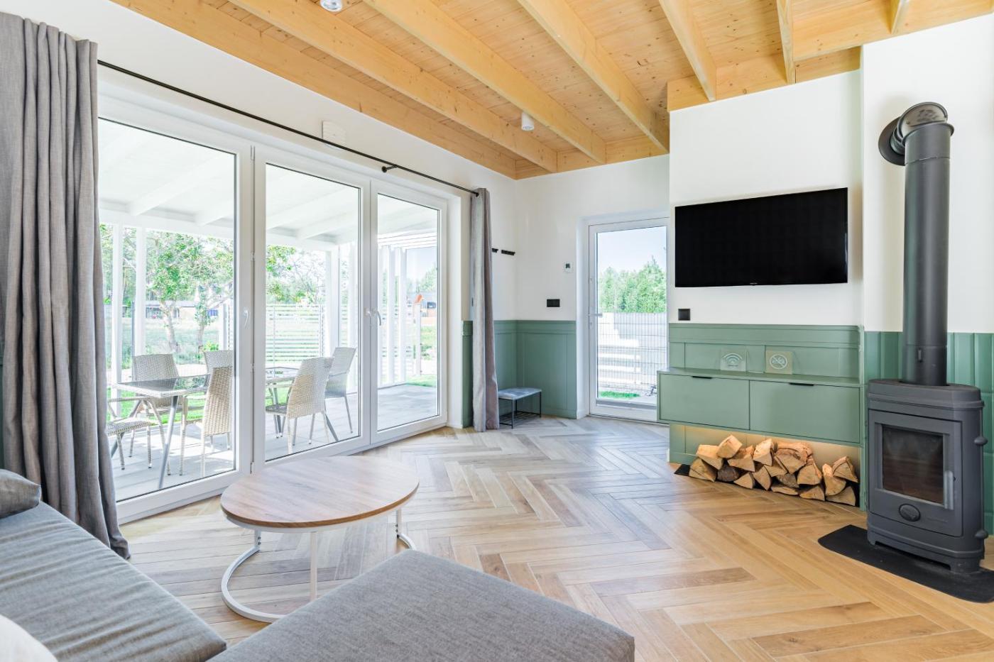 Dom z 3 sypialniami. The fireplace is the standout feature of this holiday home. In the well-fitted kitchen, guests will find a stovetop, a refrigerator, a dishwasher and an oven. Boasting a terrace with garden views, this holiday home also features a washing machine and a flat-screen TV. The unit has 8 beds. Dom wakacyjny - 10 osobowy. Powierzchnia pokoju ok.: 97 mkw.