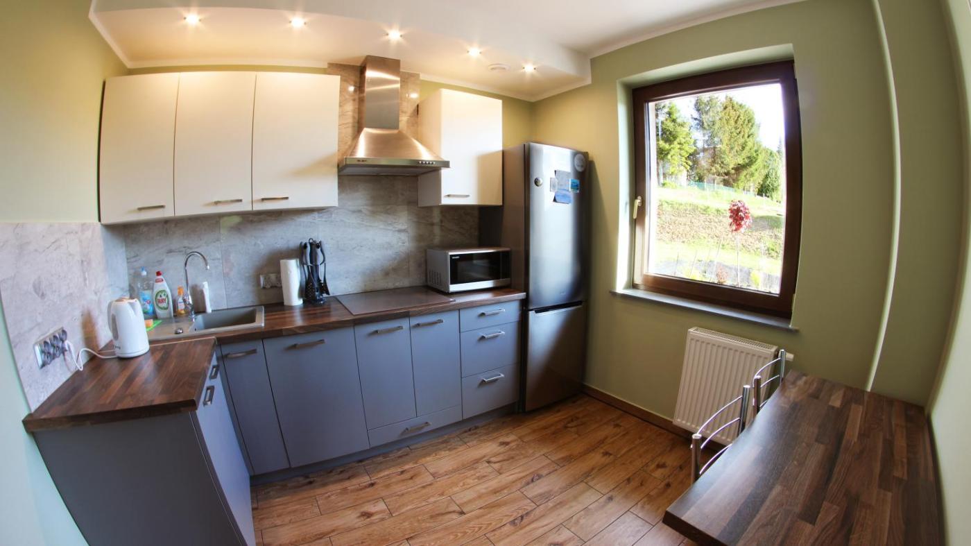 Domek z 3 sypialniami. This spacious chalet is comprised of 1 living room, 3 separate bedrooms and 2 bathrooms with a bath and a shower. Guests will find a stovetop, a refrigerator, a dishwasher and kitchenware in the kitchen. The chalet also has a barbecue. Featuring a terrace with mountain views, this chalet also offers a private entrance and a flat-screen TV. The unit offers 7 beds. Domek - 10 osobowy. Powierzchnia pokoju ok.: 74 mkw.