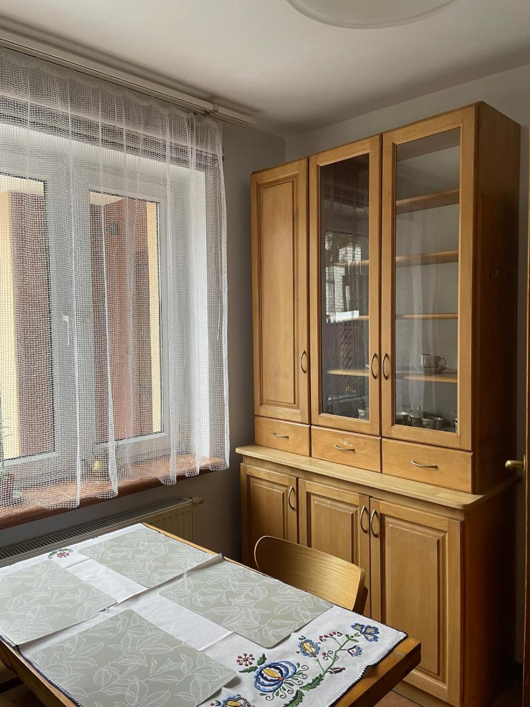 Room #1585863701. Guests can make meals in the kitchen that features a refrigerator, a dishwasher and kitchenware. The holiday home has a washing machine, a tea and coffee maker, a dining area as well as a balcony with garden views. The unit has 3 beds. Dom wakacyjny - 3 osobowy. Powierzchnia pokoju ok.: 60 mkw.
